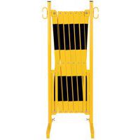 Utvidbar stålbarriere med føtter på begge sider som tillater midlertidig stenging av et farlig område. Fargevekslingen tiltrekker seg brukernes oppmerksomhet og signaliserer farer. Mulighet for å koble til flere bommer. Tar liten plass når den er foldet. TÜV-sertifikat.