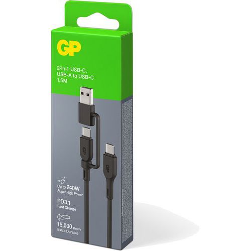 | Varenavn | 2-i-1 CCBV 240W USB-C/A til USB-C-kabel, Farge: Svart, Materiale: Termoplastisk elastomer (TPE) |