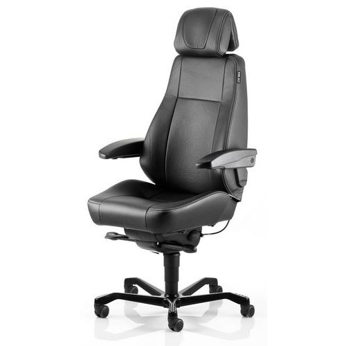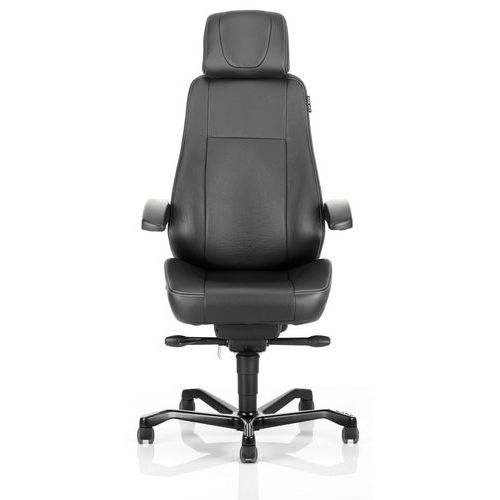 Varenavn 24-timersstol Director, Armlener: ja, Type fot: Hjul, Sete, materiale: Lær, Ryggstøtte, materiale: Lær