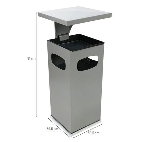 38 L askebeger og søppelkasse, Askefat, volum: 3 L, Åpning: Foran, Søppelkasse, volum: 38 L, Farge: Grå