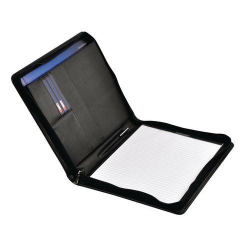 | Varenavn | A4 konferansemappe i skinn med glidelås, Materiale: Lær, Farge: Svart, Dokumentformat: 210 x 297 mm (A4) |