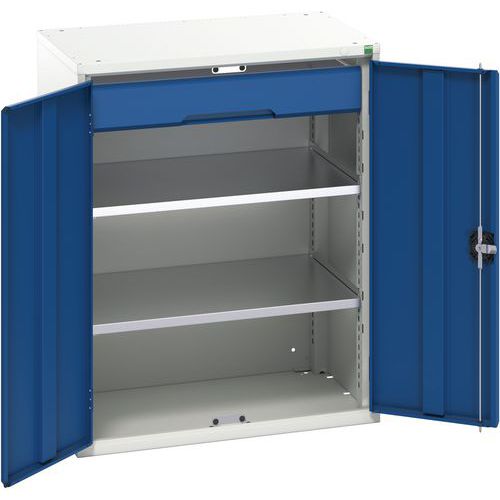 Stålplatekonstruksjon med forsterkede dører. Hyller i galvanisert stål, justerbare i trinn på 25 mm. Bæreevne per hylle og skuff 60 kg. Innerskuffer montert på lagre. Dybde 550 mm. Sikkerhetsråd: - plasser møbelet på en flat overflate - fest det til en vegg eller skillevegg med egnede fester - pass på at du ikke overskrider den maksimalt anbefalte belastningen, samt at den er godt fordelt. Laget i UK Maksimal last (kg) : 1000 Maksimal vekt per hylleplan (kg) : 75