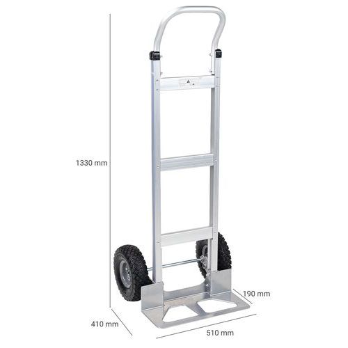 Aluminiumstralle – halvpneumatiske hjul – kapasitet 150 kg, Kapasitet: 150 kg, Type hjul: Luftgummihjul, Hjul