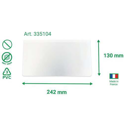 | Varenavn | Antimikrobielle maskehylser, sjekkheftestørrelse, pakke à seks, Tykkelse: 110 µm, Høyde: 148 mm |