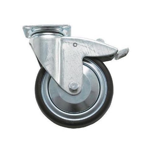 - Bremsen er dobbeltvirkende og låser både hjul og svingkrans.