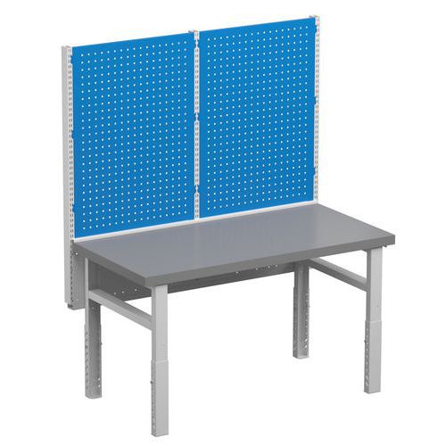 - Benken finnes med høydejusterbare ben, perforerte plater og verktøyskap for effektiv verktøyoppbevaring.