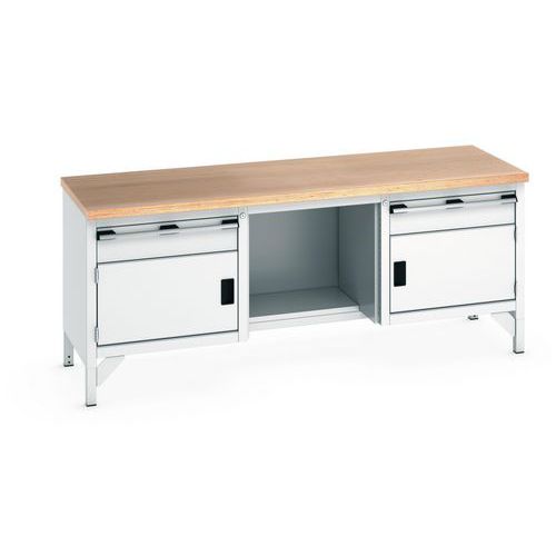 Arbeidsbenk i bøk, Cubio – 2 dører – 2 skuffer – L2000 mm – Bott