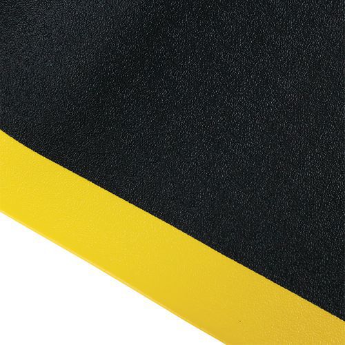 Arbeidsplassmatte med småcellet granulær/kornet struktur for overlegen komfort - passer for de fleste tørre kommersielle og industrielle miljøer. Fasede og forseglede kanter. Matten gir redusert risiko for fallulykker og skader som oppstår fra disse.