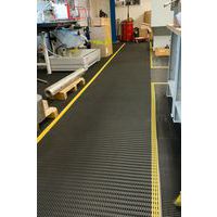 I PVC og firkantprofiler med total høyde 16 mm, sammenbygd i gittermønster. Matten er vendbar, sklisikker takket være diamantspisser på begge sider. Bruksområde: på alle industrigulv, kjølerom, landganger, loftsganger etc. Såpass myk at den tilpasses til ujevnheter i underlaget. Isolerende, hygienisk. Resistent mot flammer. Sklisikker. Bestilles i hele meter!