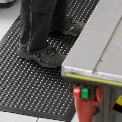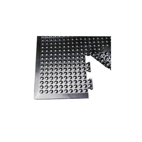Undersiden har et sugekoppmønster som gjør at matten suger seg fast i gulvet og ligger stille. Det smarte modulsystemet med ende- og midtbiter bygger du selv til ønsket størrelse. Modulene har innebygde skråfasede kanter for redusert snublerisiko og tas lett fra hverandre for rengjøring. Matten passer i lett og tung industri. Den høye olje-, fett-, kjemikalie- og temperaturbestandigheten gjør at den også passer på sveisearbeidsplasser der det forekommer både sveiseglød og skjærevæsker.