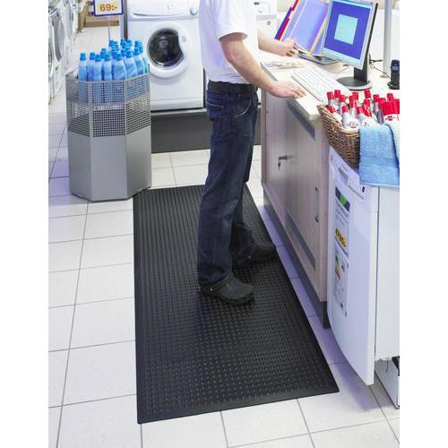 Matten fås i et fast mål samt i moduler slik at du selv kan bygge matten din i ønsket størrelse. Modulene har innebygde skråfasede kanter for redusert snublerisiko og kan lett tas fra hverandre for rengjøring. Naturgummien beholder sin smidighet selv i minusgrader. Matten tåler fuktighet, men passer best i tørrere miljøer uten kjemikaliepåvirkning som f.eks. lager og lett industri. Passer også ved pakkebord. Naturgummi = sterke lukter av gummi, ikke anbefalt på kontorer.