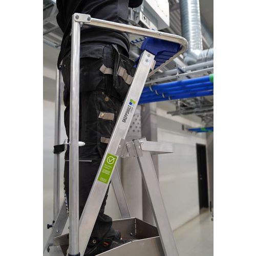 Med fallsikring på alle sider garanterer denne mobile arbeidsplattformen maksimal sikkerhet.