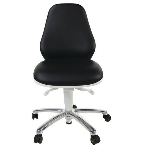| Varenavn | Arbeidsstol 9142, Sete, materiale: Kunstlær, Modell stoler: Lav, Fotring Ø: nei, Minimal sittehøyde: 460 mm |