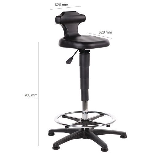 | Varenavn | Arbeidsstol 9419, Type fot: Glideføtter, Sete, materiale: Polyuretan, Modell stoler: Høy, Fotring Ø: ja |