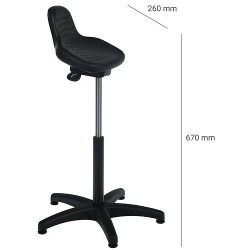 | Varenavn | Arbeidsstol Sitt/Stå, uten fotring, Type bunn: 5 føtter, Type fot: Glideføtter, Sete, materiale: Polyuretan |