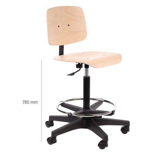 | Varenavn | Arbeidsstol TB 95, Type bunn: Sentral, Sete, materiale: Kryssfiner , Ryggstøtte: ja, Fotring Ø: ja |