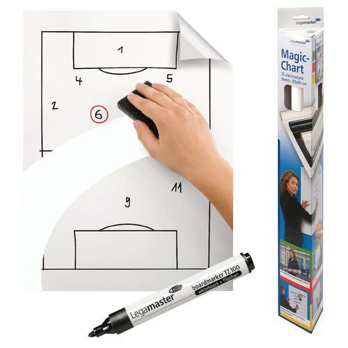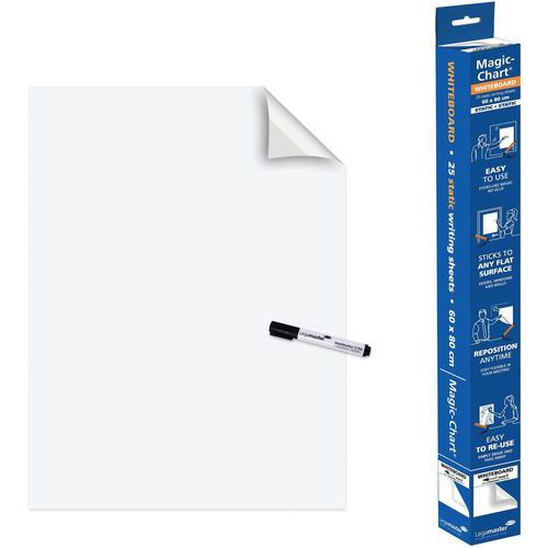 | Varenavn | Ark elektrostatiske hvite Magic Chart – Lot à 25 – Legamaster, Skriveoverflate: Papir, Høyde: 80 cm |