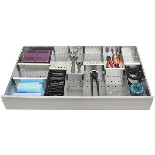 - Sett med robuste skillevegger for fleksibel inndeling av Perfo-skapet ditt.