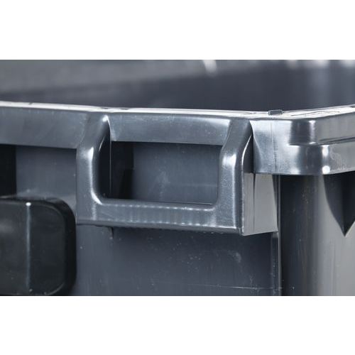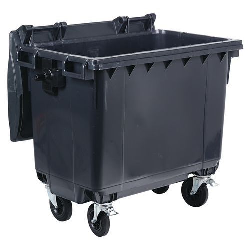 Manutan UV-bestandig HDPE avfallsbeholder. Enkel å håndtere takket være 4 svingbare hjul (Ø 200 mm), hvorav 2 har bremser. Håndtak på tre sider for forbedret manøvrerbarhet. Enkel å ta vare på.