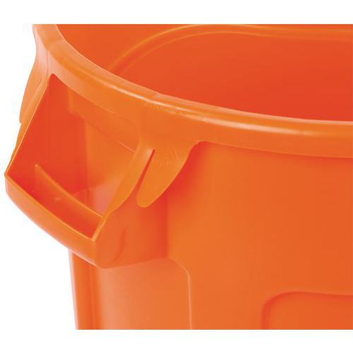 Avfallsbeholder i polyetylen med høy synlighet takket være den oransje fargen.