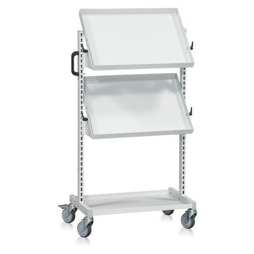 | Varenavn | Backvogn med 2 vippbare hyller, Totalhøyde: 1250 mm, Totalbredde: 695 mm, Totallengde: 460 mm |
