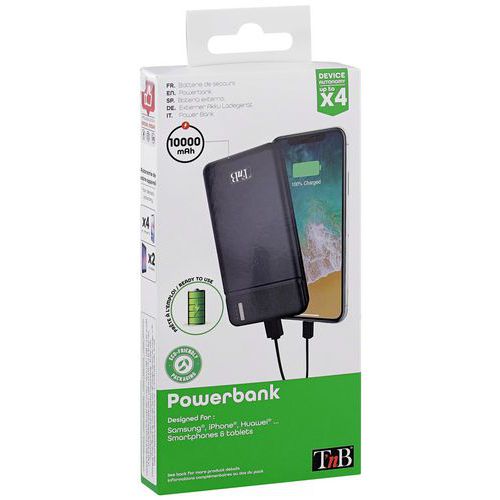 | Varenavn | Bærbar dobbelt USB-powerbank, Kapasitans: 10000 mAh, Farge: Svart, Bredde: 6.8 cm, Høyde: 14.3 cm |