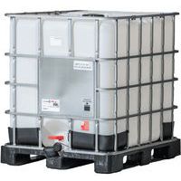 stk.- Rekondisjonert IBC (Intermediate Bulk Container) 1000 L med plastpall, tappekran og bur – et økonomisk alternativ til å kjøpe nye IBC-beholdere.