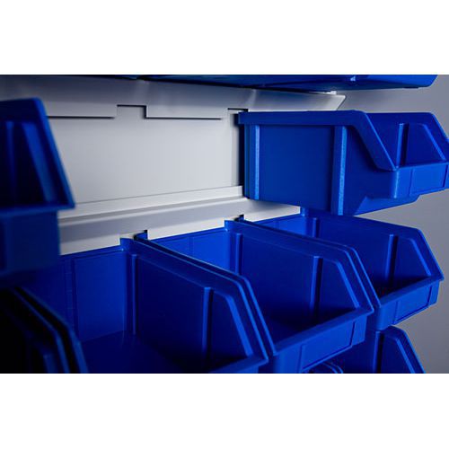 | Varenavn | Bakkeskap med 232 bakker, Totalhøyde: 1990 mm, Totalbredde: 1000 mm, Totaldybde: 435 mm, Farge: Blå |