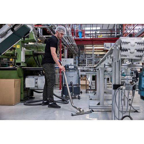 Industristøvsugeren er spesielt tilpasset bransjer som næringsmiddel, jern og metall, produksjon, legemiddelindustri samt større logistikk- og lageranlegg.