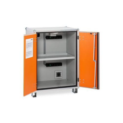 Skapet gir tidlig advarsel ved skader på litiumbatterier og følger alle relevante sikkerhetsforskrifter for lading av slike batterier.