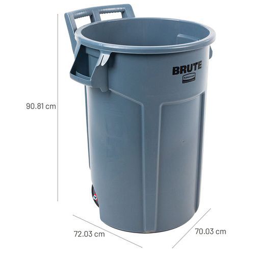 Beholder rund på hjul Brute® – Rubbermaid, Volum: 167 L, Åpning: Ingen dekning, Materiale: Plast, Farge: Grå