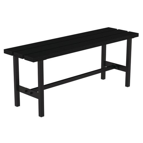 - Sittebenk Gardelux av lakkert PVC. Understellet er lagd av svartlakkert stål.