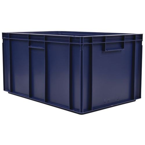 Kasse av europeisk standard med god stabilitet ved stabling. Enkel godshåndtering med lukkede håndtak. Tåler: oljer, fett og en rekke kjemiske produkter. Robust og allsidig – kvalitet fra Manutan. Kan brukes i mange ulike miljøer og klimaer, også svært kalde.