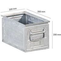 Boks metall, Volum: 14 L, Totalhøyde: 200 mm, Totalbredde: 200 mm, Totallengde: 350 mm, Farge: Grå Boks metall, Volum: 14 L, Totalhøyde: 200 mm, Totalbredde: 200 mm, Totallengde: 350 mm, Farge: Grå