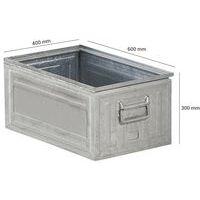 Boks metall, Volum: 70 L, Totalhøyde: 300 mm, Totalbredde: 400 mm, Totallengde: 600 mm, Farge: Grå Boks metall, Volum: 70 L, Totalhøyde: 300 mm, Totalbredde: 400 mm, Totallengde: 600 mm, Farge: Grå