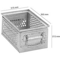 Boks metall perforert, Volum: 15.5 L, Totalhøyde: 212 mm, Totalbredde: 215 mm, Totallengde: 365 mm Boks metall perforert, Volum: 15.5 L, Totalhøyde: 212 mm, Totalbredde: 215 mm, Totallengde: 365 mm
