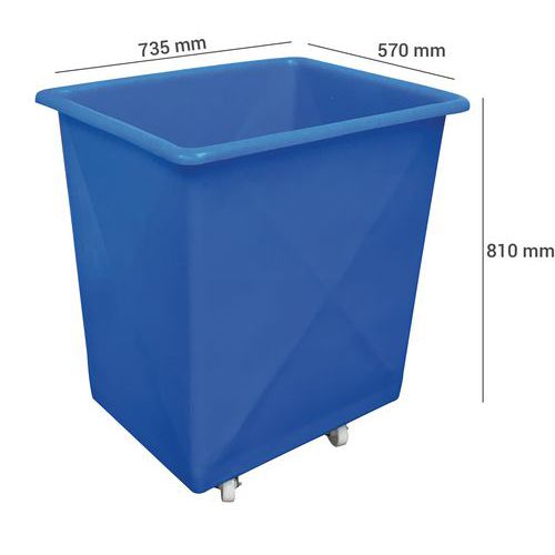 Boks på hjul med forsterkning, Volum: 225 L, Totalhøyde: 810 mm, Totalbredde: 570 mm, Totallengde: 735 mm