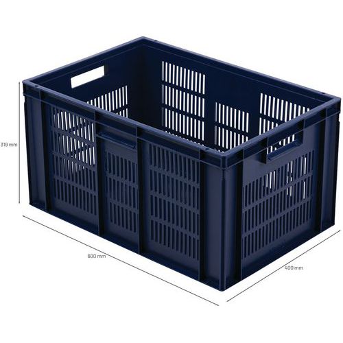 Boks Perforerte vegger/hel bunn, Volum: 60 L, Kan stables: ja, Totalhøyde: 319 mm, Totalbredde: 400 mm Boks Perforerte vegger/hel bunn, Volum: 60 L, Kan stables: ja, Totalhøyde: 319 mm, Totalbredde: 400 mm