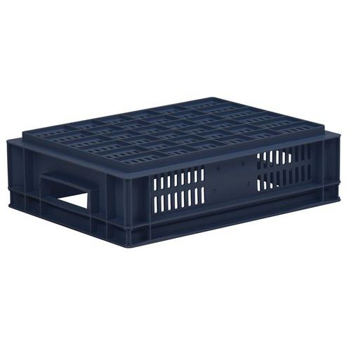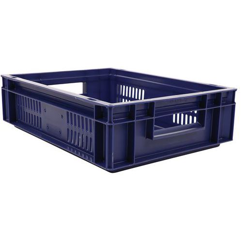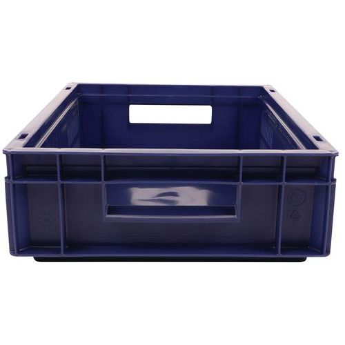 Standardbokser av polypropen (PP). Passer perfekt til å stables på europaller. Både til lagring og håndtering av gods. Utmerket stabilitet ved stabling i høyden. Næringsmiddelgodkjente, bestandige mot oljer, fett og mange kjemikalier.