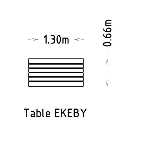| Varenavn | Bord Ekeby, for plasstøping, Totallengde: 130 cm, Totalhøyde: 70 cm, Materiale: Furu, Vekt: 33 kg |
