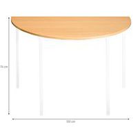 Bord halvrundt universal, Type bunn: 4 føtter, Høyde: 74 cm, Bredde: 120 cm, Form: Halvsirkel, Plate