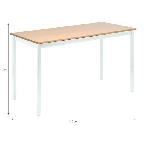Lagd av slitesterkt laminat og lakkert stålunderstell utstyrt med stillbare føtter.