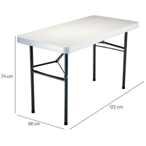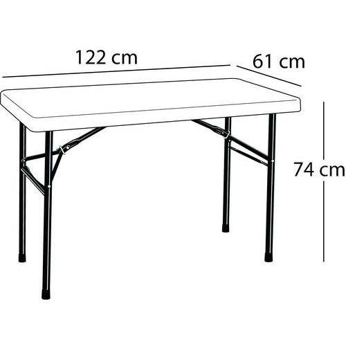 | Varenavn | Bord sammenleggbart rektangel, Type bunn: 4 føtter, Høyde: 74 cm, Bredde: 122 cm, Form: Rektangel, Plate |