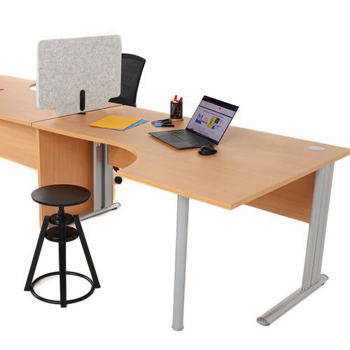 Dobbelfunksjons skrivebordspartisjon som gir privatliv og lydabsorpsjon. Monteres på pulter med bordplater i 5 til 40 mm tykkelse. Kutt for å lette kabelføringen. Tilgjengelig i to tidløse farger med et unikt design.