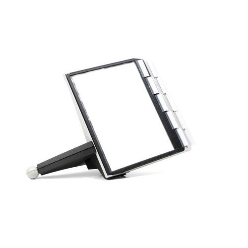 - Komplett bordstativ med 10 A4-paneler (5 svarte og 5 grå) av refleksfri polypropylenplast og etikettholdere.