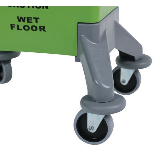 | Varenavn | Bøtte på hjul med presse – 25 l, Volum: 25 L, Farge: Grønn, Høyde: 96 cm, Bredde: 38 cm, Lengder: 52 cm |