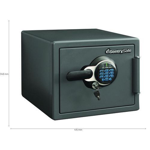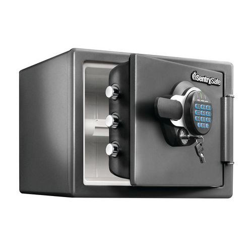 - Brannsikkert og vannbestandig verdiskap Sentry Safe.