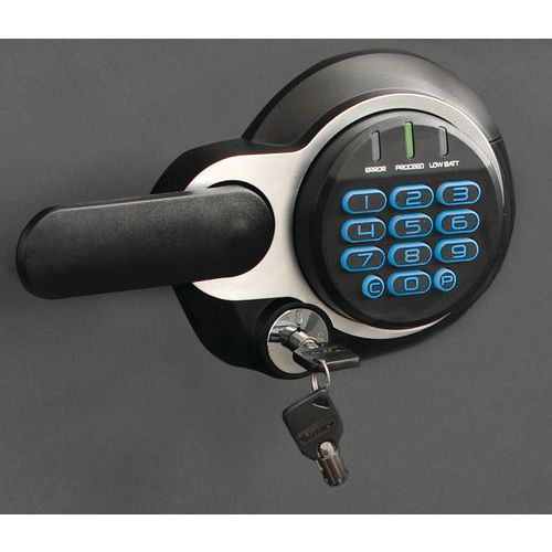 - Elektronisk kombinasjonslås med bakgrunnsbelysning og justerbar hylle.