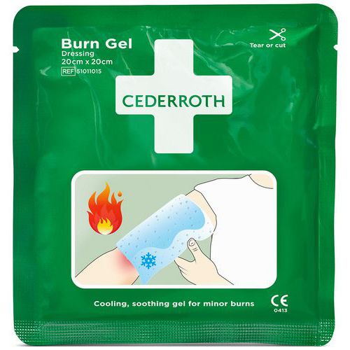 Cederroth brannskadekompress gir rask avkjøling og effektiv smertelindring ved brannskader.