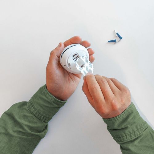 - Brannvarsleren leveres med et 5-årsbatteri og kan monteres både med medfølgende 3M-tape eller skruer.